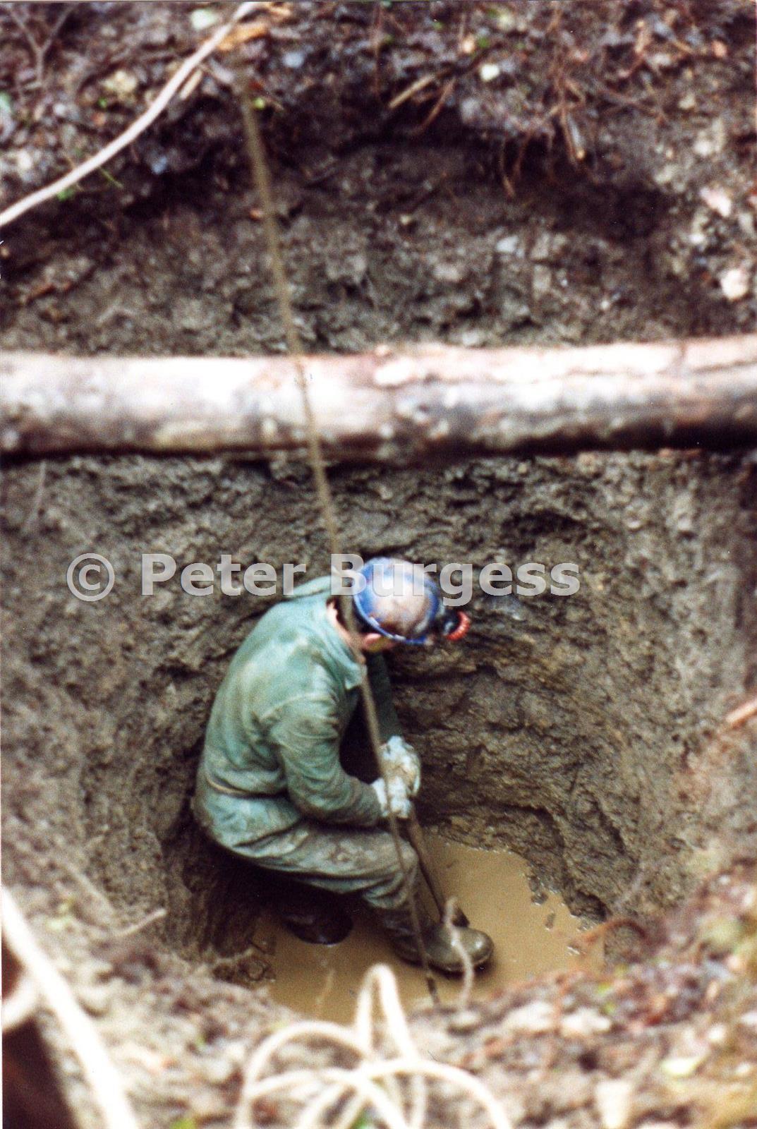 The start of the dig in the suspected pumping shaft of Orchard Wood Mine (now Archer Wood) near Battle, 1988.