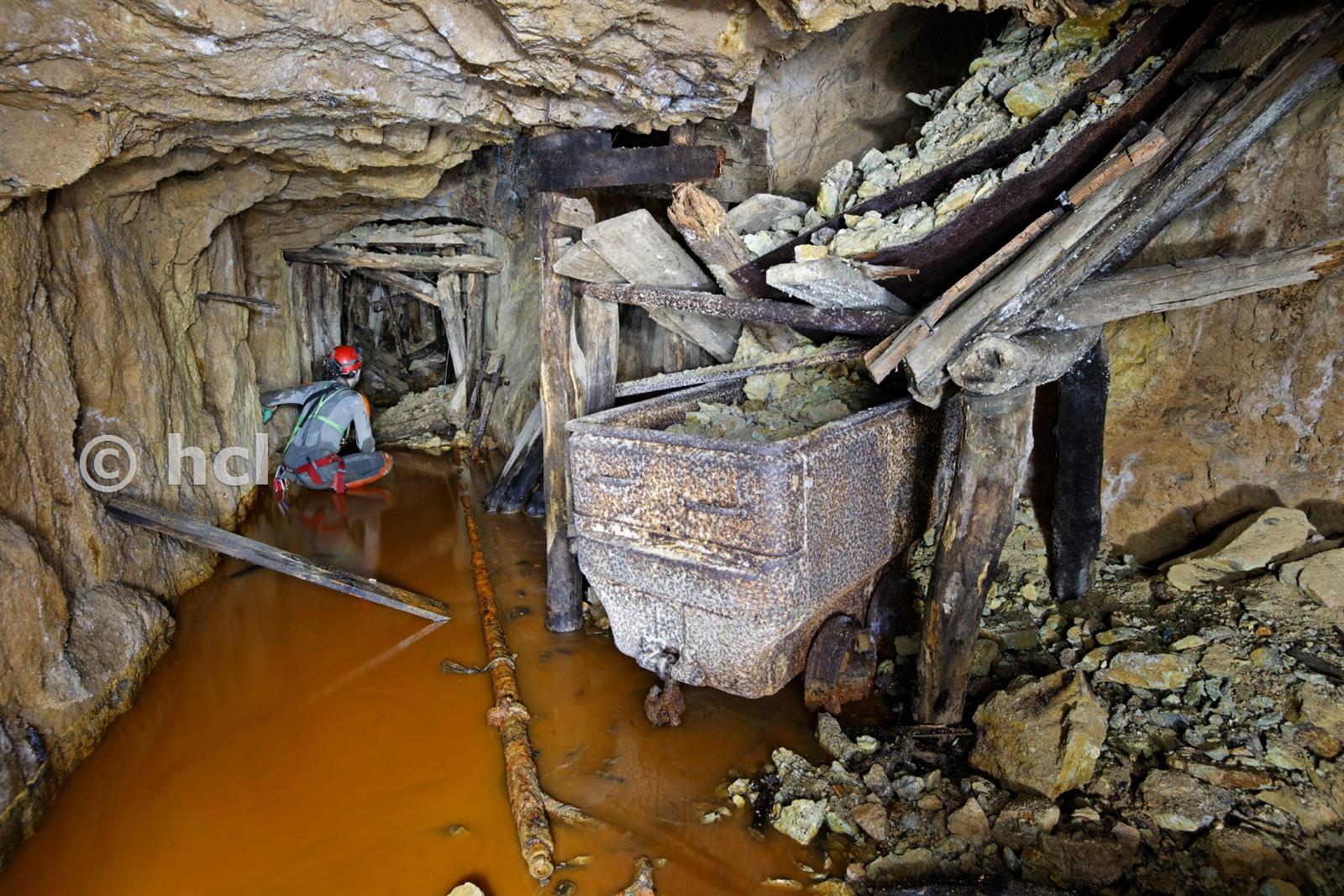 Ore chute and mine cart