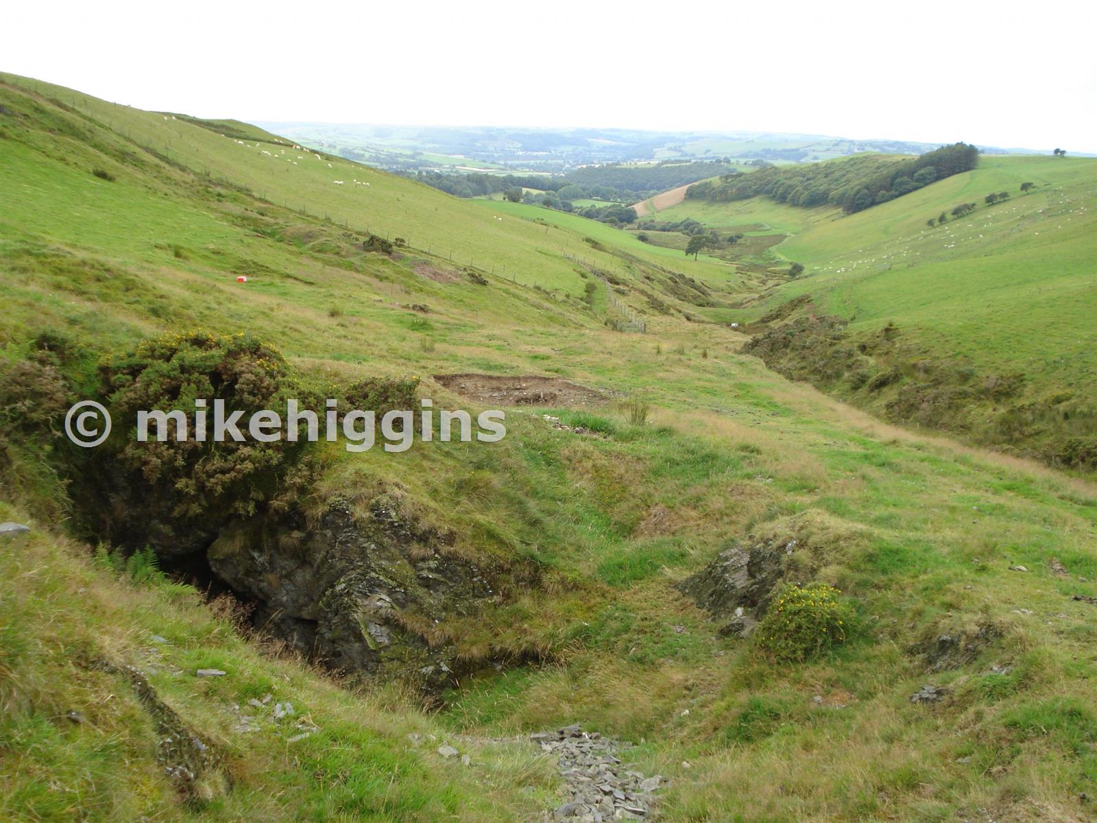 Looking down Nant Cennant to the west taking in all the features apart from the 2 easternmost shaft mounds