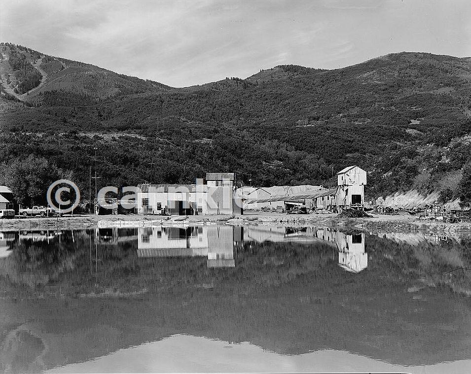 . OVERALL VIEW OF MINE SITE, LOOKING ACROSS SETTLING POND. ON RIGHT IS TIPPLE FOR LOADING ORE INTO TRAIN CARS; IN CENTER IS FORMER BOILER HOUSE; ON LEFT IS PORTAL OF SNOWSHED FOR MINE CARS USED TO CARRY WASTE ROCK. VIEW TO WEST. Courtesy Library of Congress, Prints & Photographs Division, HAER reproduction number HAER UTAH,26-HEBCI.V,3-3