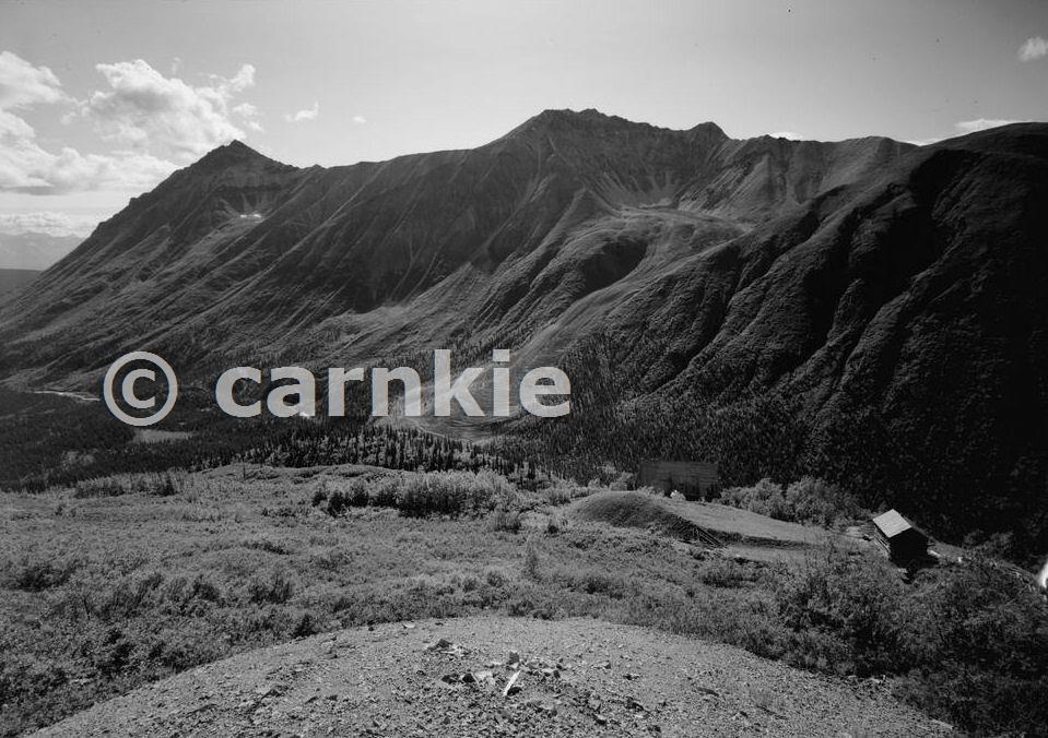PANORAMA VIEW FROM UPPER CAMP, DOWN McCARTHY CREEK, FROM THE HIGH TUNNEL Courtesy Library of Congress, Prints & Photographs Division, HAER, Reproduction HAER AK,20-MCAR.V,1-6