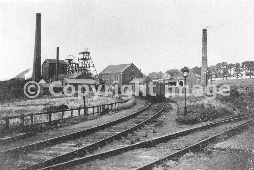 Park Pits post 1926. The right headframe is for the Lawrance Pit and the left served the Oval Pit. The Round Pit shaft is behind the Oval enginehouse.