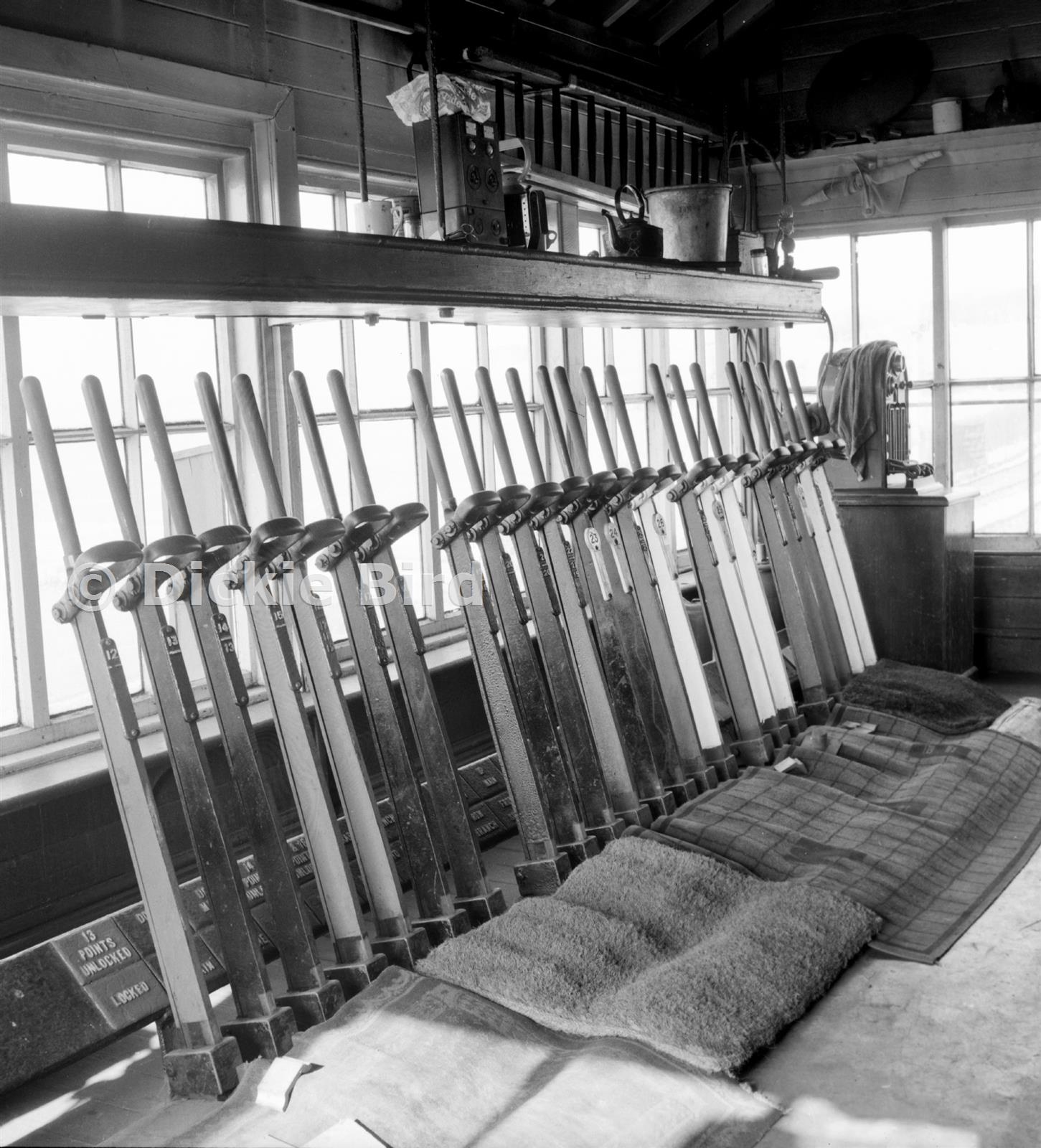 This picture was taken during the run of more or less the final train which I have down as 30th April 1967. Enthusiasts were taken from here in guards vans along the CHPR, the site here being on the route of the Ashbourne to Buxton line. Note the mats and bits of carpet placed over the lever slots to keep out the fierce wind which could blow here.