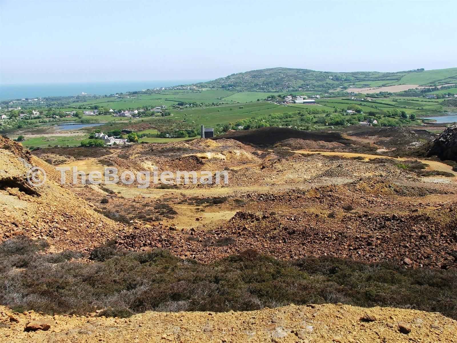 Looking across Hillside opencast towards Pearl Shaft engine house. Precipitation ponds to left and right