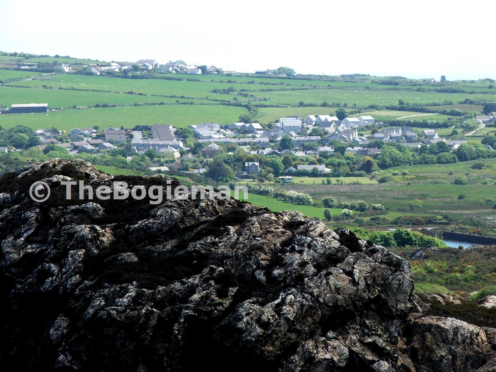 Looking across to Mynydd Eilian and Penysarn. Mona Mine''s ochre pond on RHS