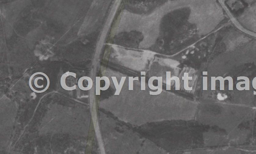 Aerial photo of Tan yr Allt area 1945. Note Garden shaft (left) and Siaft Wen (right) still clearly visible at that time. Also Pen y Nant and Chapel shafts.