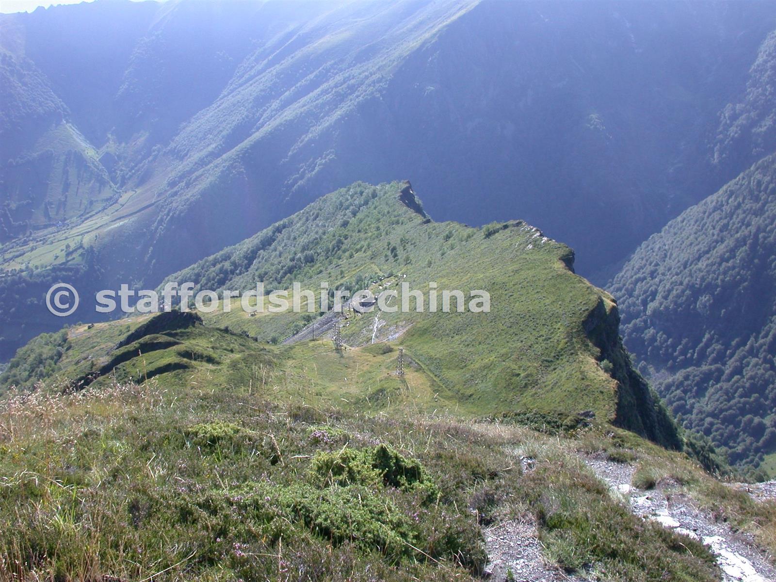 Tip and building for the tunnel entrance visible centre. Tunnel passes through mountain to Cigalaire valley bottom right.