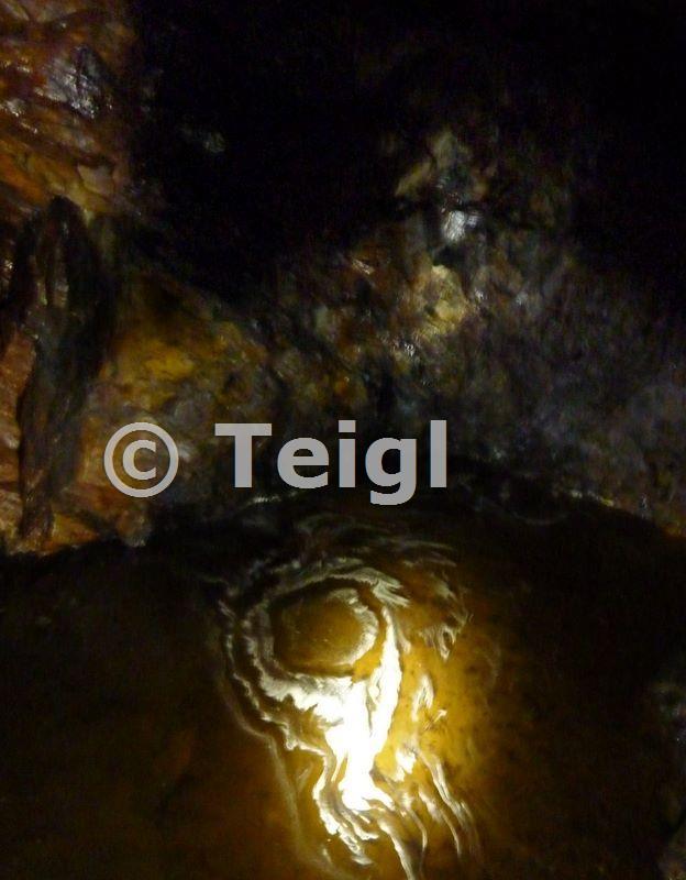 This mine is knee deep in clingy smelly sludge. This jellyfish-like thing was caused by calcite.