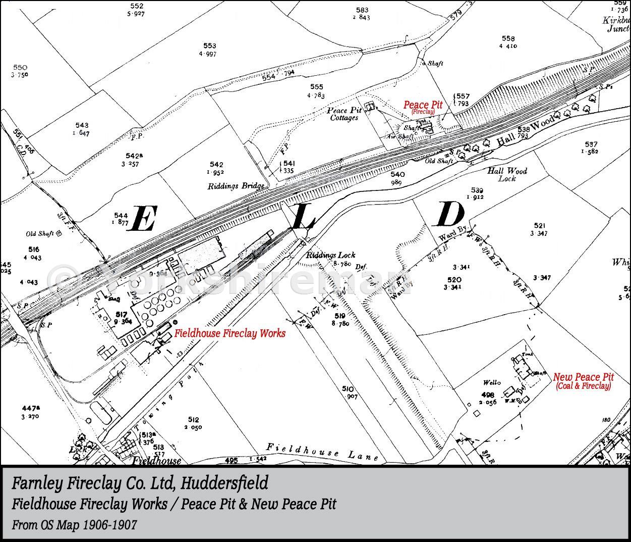 Location: Deighton, Huddersfield. The two pits served the Fireclay works operated by the Farnley Fireclay Co. Ltd, Huddersfield