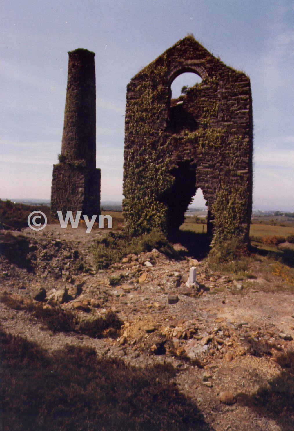 Showing the chimney before it collapsed. Also not the ivy which covered the structure before the remediation work.