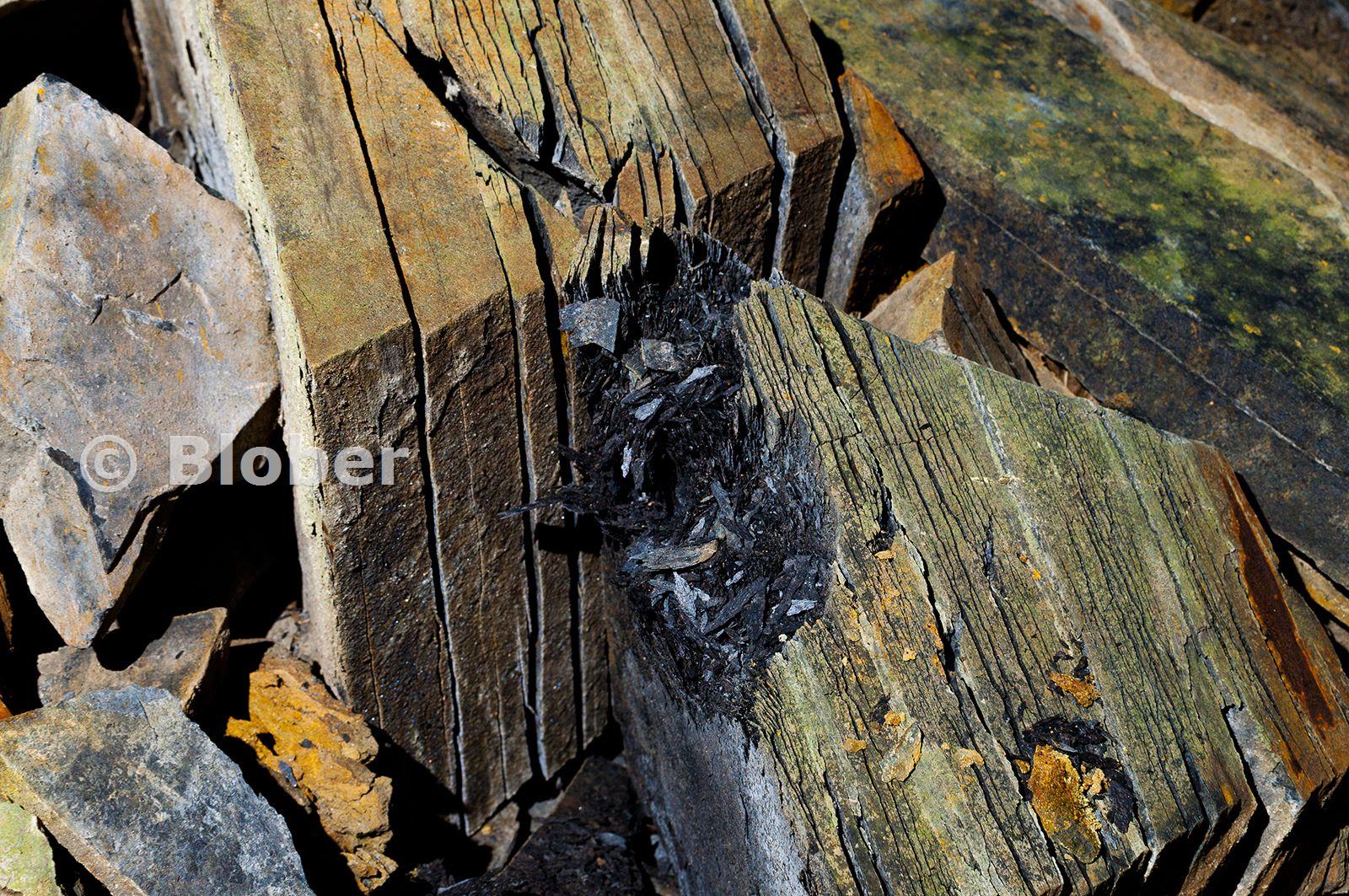 A shot to show the excellent splitting abilities of the slate here but the unfortunate friability after some years. The green is from lichens due to the chamber opening to daylight