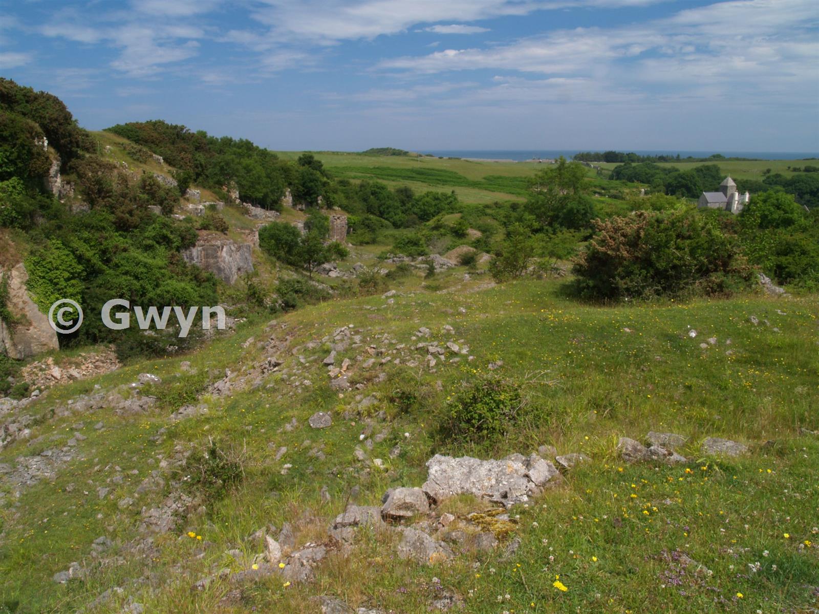 Landscape view looking NE. from within the quarry. Penmon Priory can be seen on the right hand side. 2.7.09
