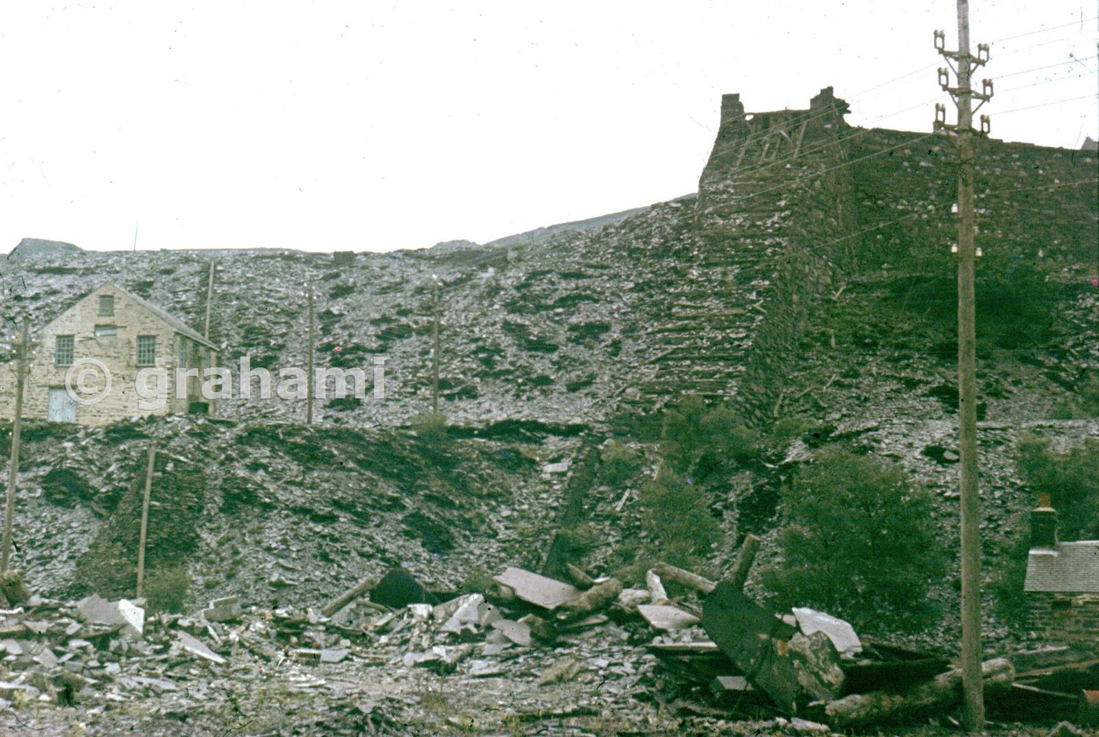 The water balance in the background lifted waste from the two balances on Red Lion Floor - George and Douglas, off the picture to the left - to Twlldyndwr floor. The other building visible was Penrhyn's second substation and in more recent times has become the magazine!