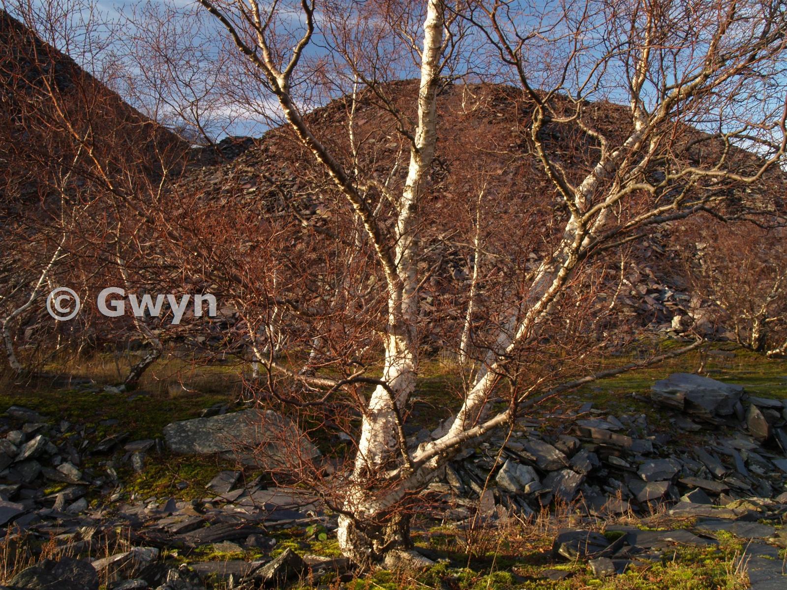 Birch tree on one of the old quarry waste levels. Tree. Ecology. Landscape detail. Natural regeneration.