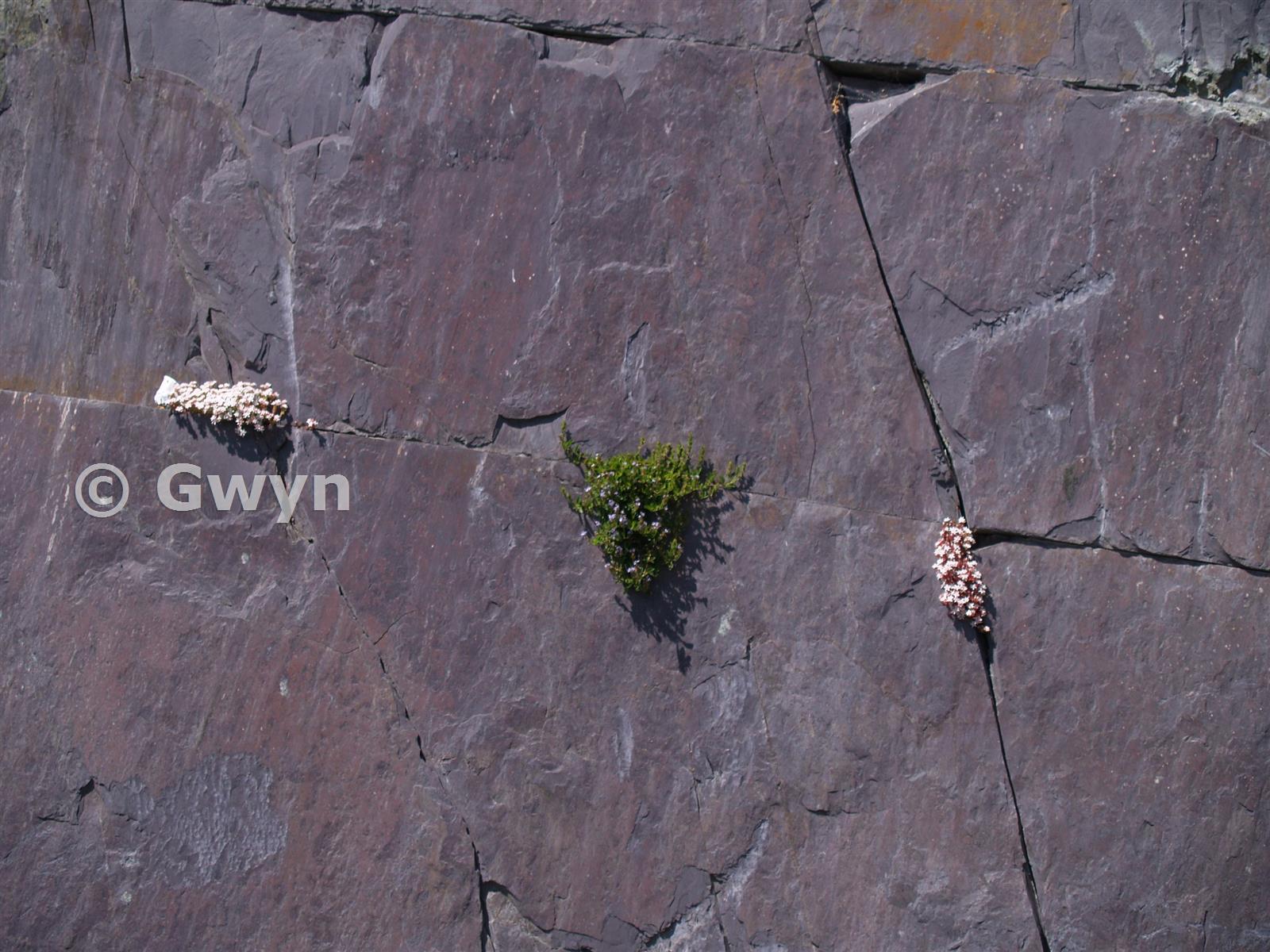 Ecology. Sedum and (?)Veronica on a vertical, S facing, old terrace wall.