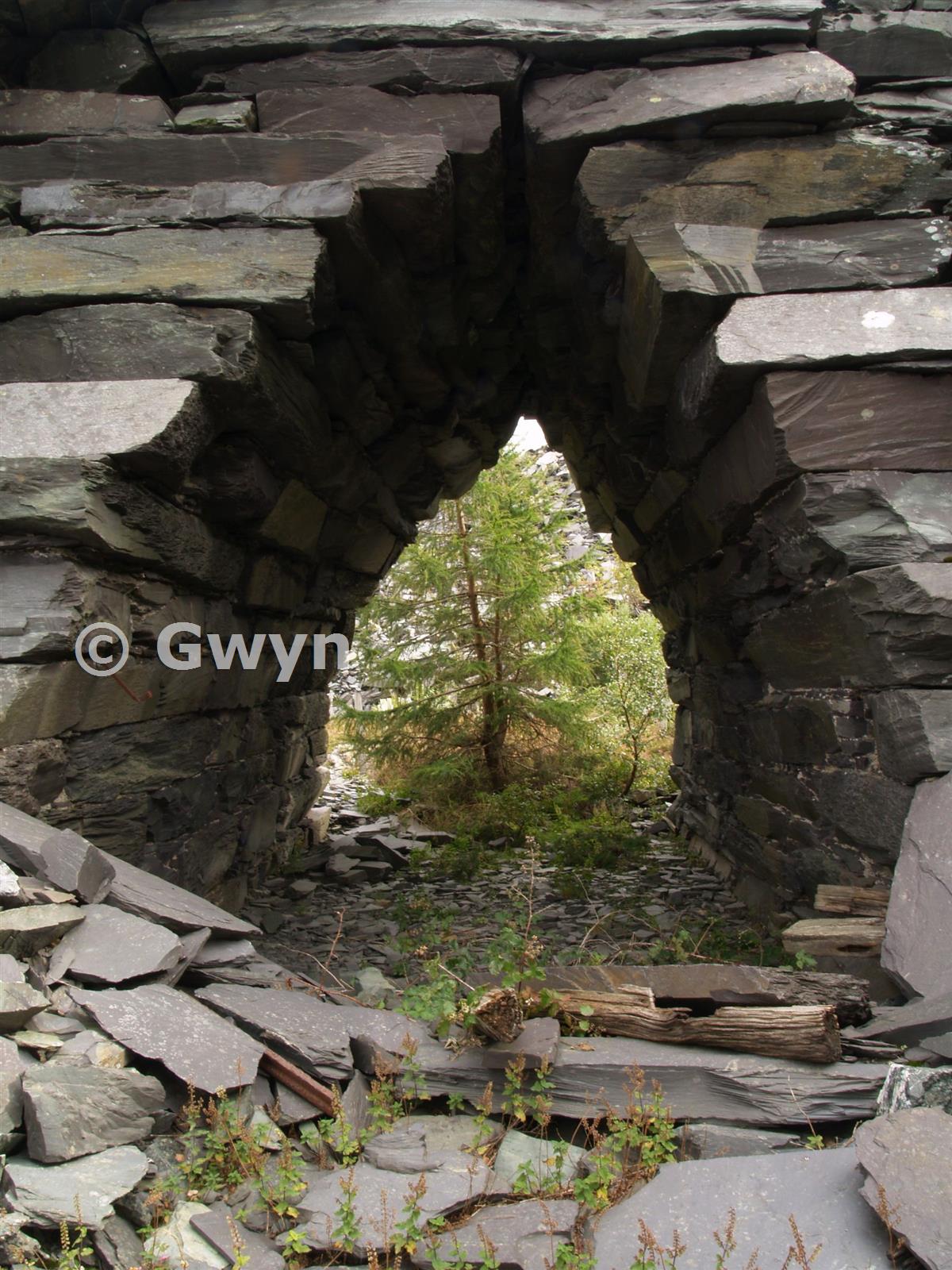 Archway under the Fronllwydd incline. The incline was for lowering usable produce and the archway to allow lateral movement of waste to the tips beyond.