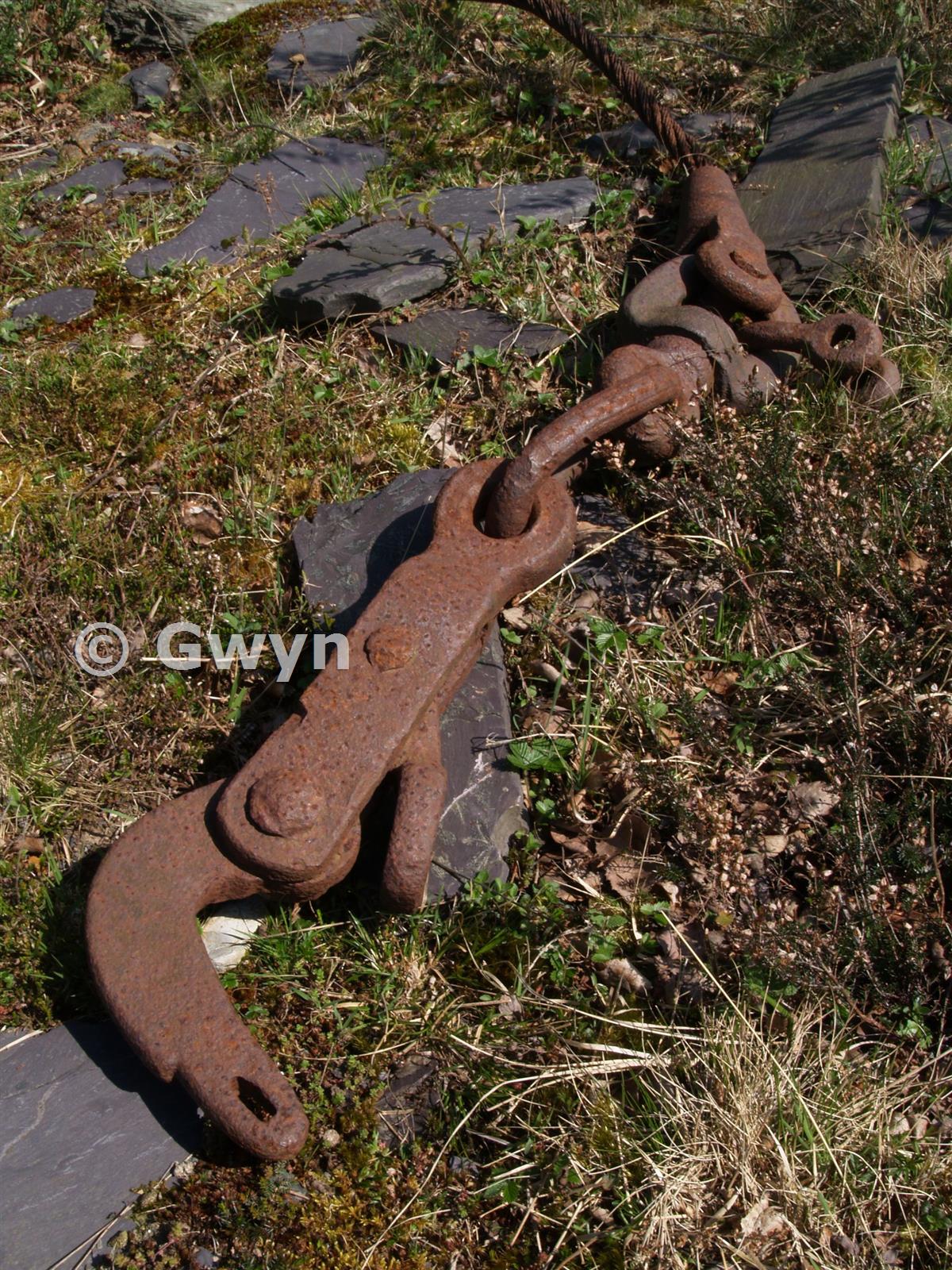 Incline cable and hook for attaching to wagons. April, 2009. Removed Summer 2009.