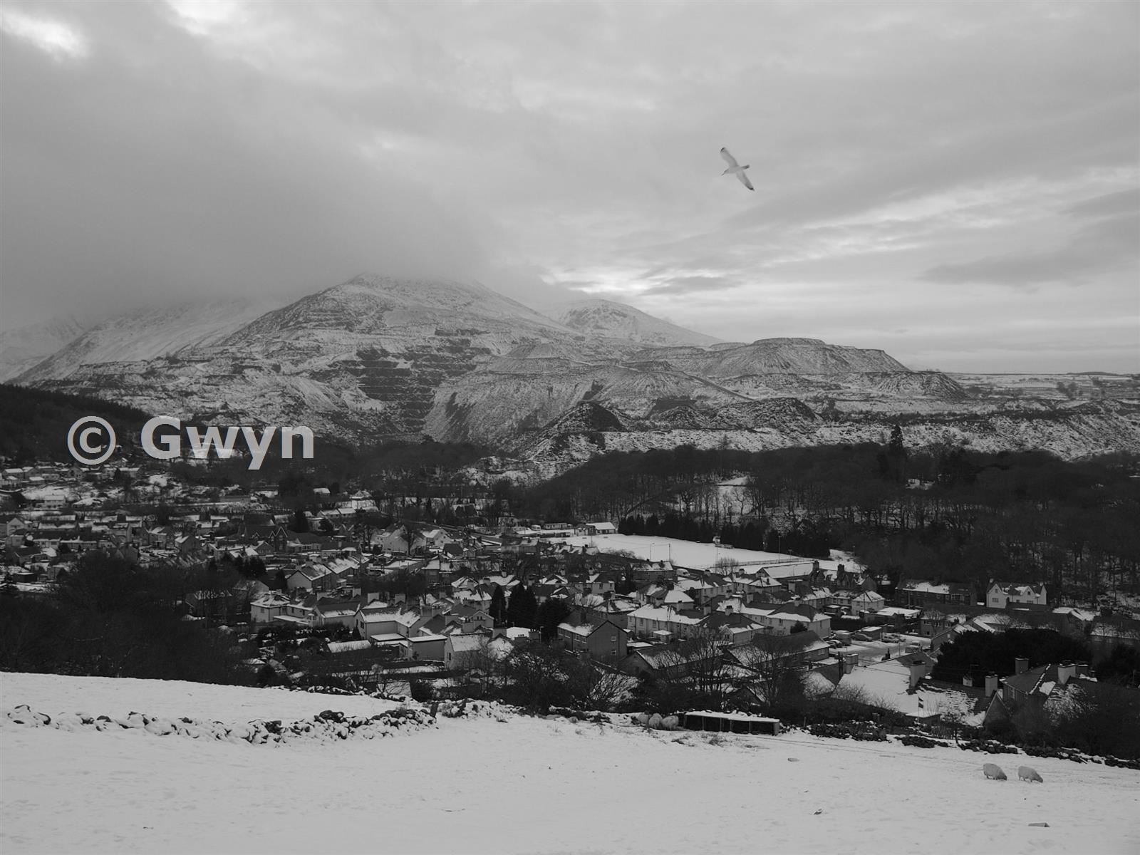 Landscape view of the quarry looking over the southern side of Bethesda from Carneddau Road. January,11. 2010.