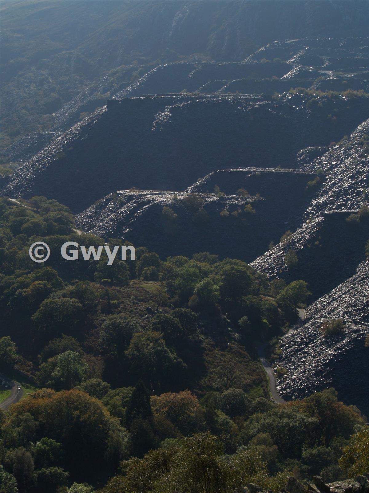 Landscape detail. Old tip heads from East. Pen clip. Nant Ffrancon.
