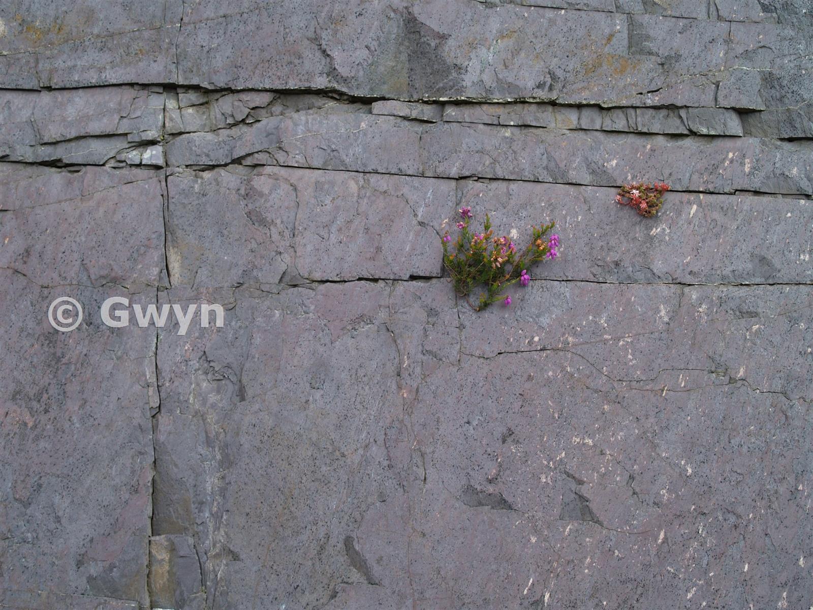 Heather and Sedum on S. facing terrace wall. Plants. Ecology. Tenacity.