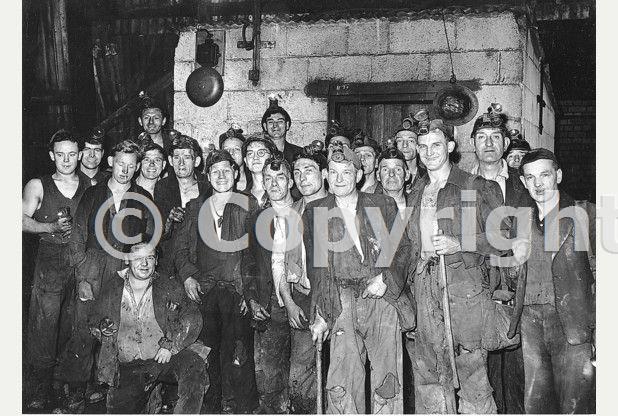 Pensford miners waiting to descend for a saturday overtime shift , probably summer 1949