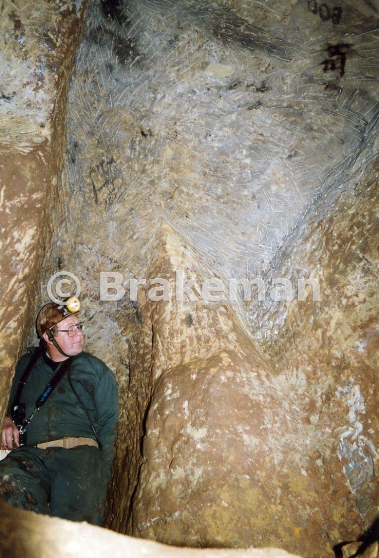 Well defined pick marks in roof of small level next to Blue shaft, circa 1987