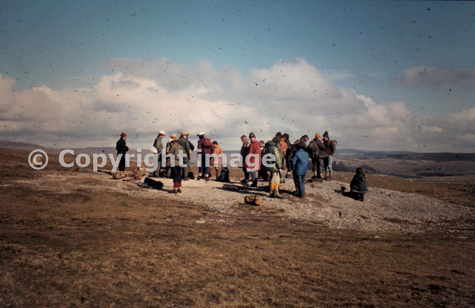 NCMRS meet, sadly no underground photos have come to light (yet). People mainly anon, Cyril McChesney with the red cagoule (A McC to the left (?)) and me in the yellow socks and green Mountain Equipment duvet jacket, so post-1974 and BSC overpaying me so I could afford such luxuries (probably FMM to the right).