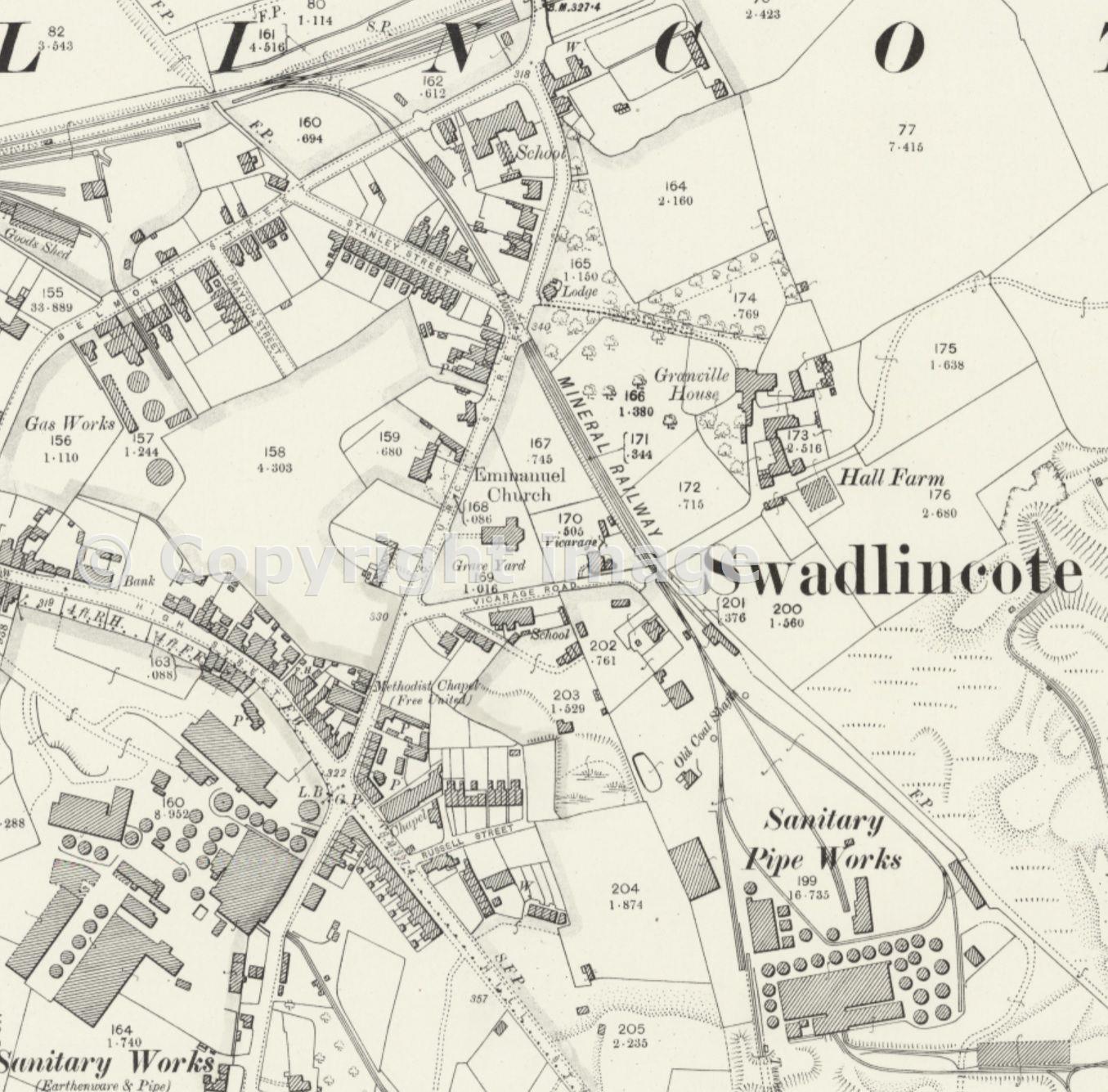 This was connected to Granville no 1. pit via a tramway in a tunnel under the spoil tips. Finished product was taken to the Swadlincote loop line to the North.