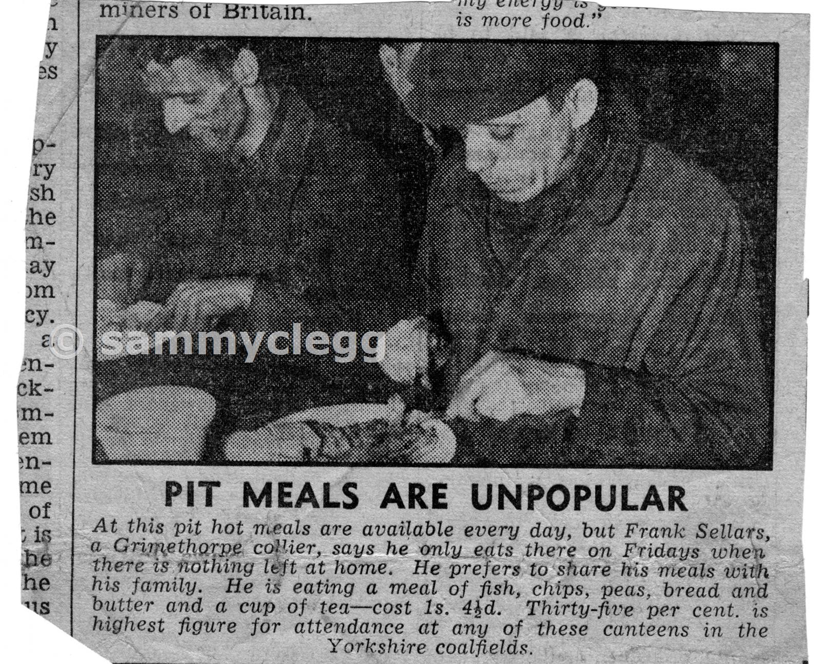 Newspaper clipping from the early 1950's featuring a small (now) amusing article on canteen food in the Yorkshire coalfield and in particular Grimethorpe.