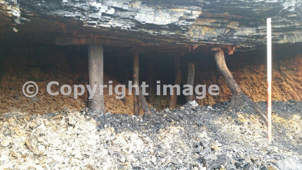 Pit props made of sawn branches/ small trunks (at least one was oak) within a gallery close to Ellen Pit. A waggonway associated with the shaft of Ellen Pit was constructed over several in-filled shafts and galleries, so this gallery possibly pre-dates the pit, which was not shown on the 1850s Ordnance Survey map, but was ''old coal pit'' and ''old shafts'' on the 1890s revision. The gallery was exposed during modern excavations