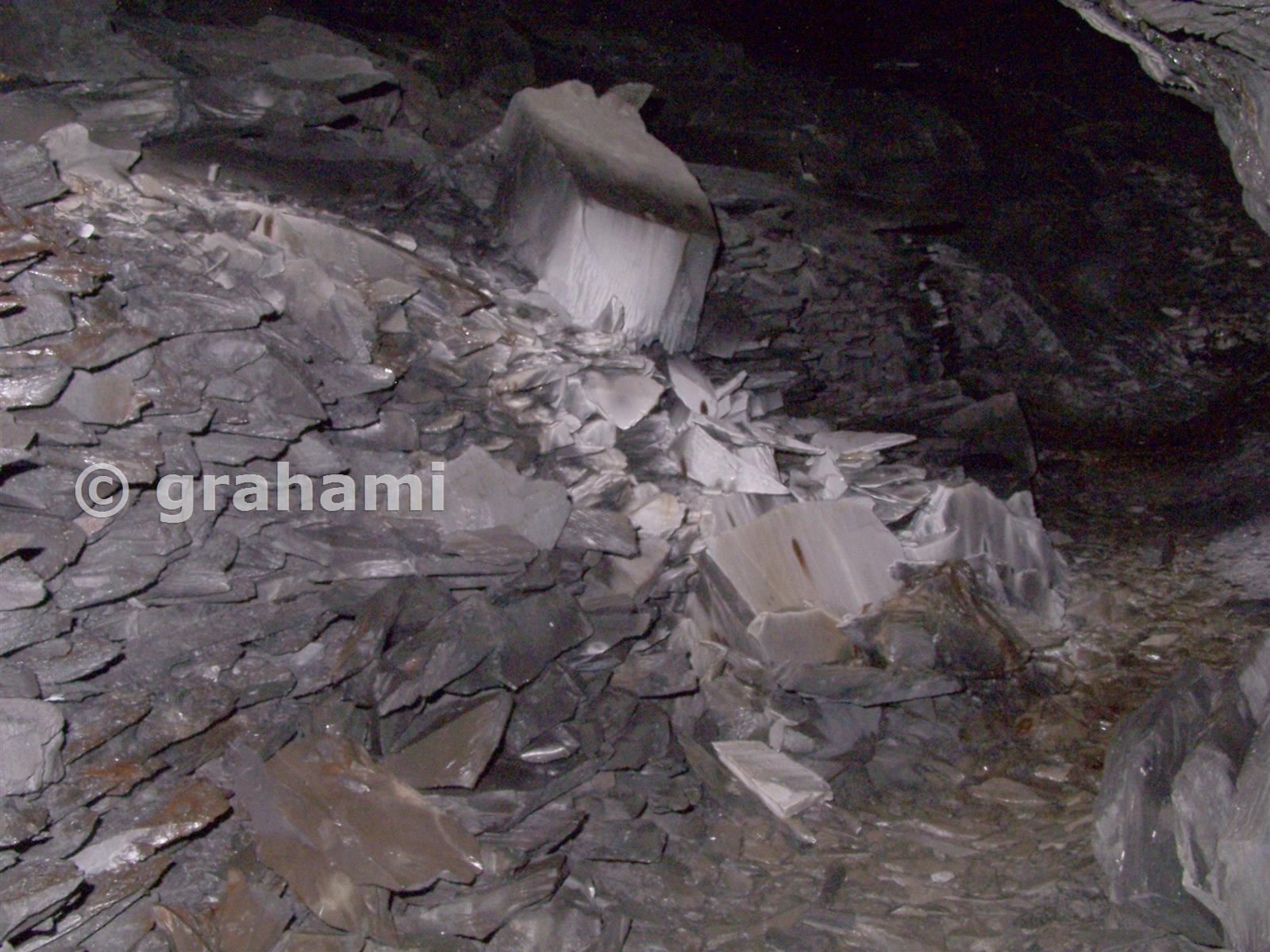 Calcite (?) covered slabs in the northern part of the "cathedral" this view looking southwards along floor 6.