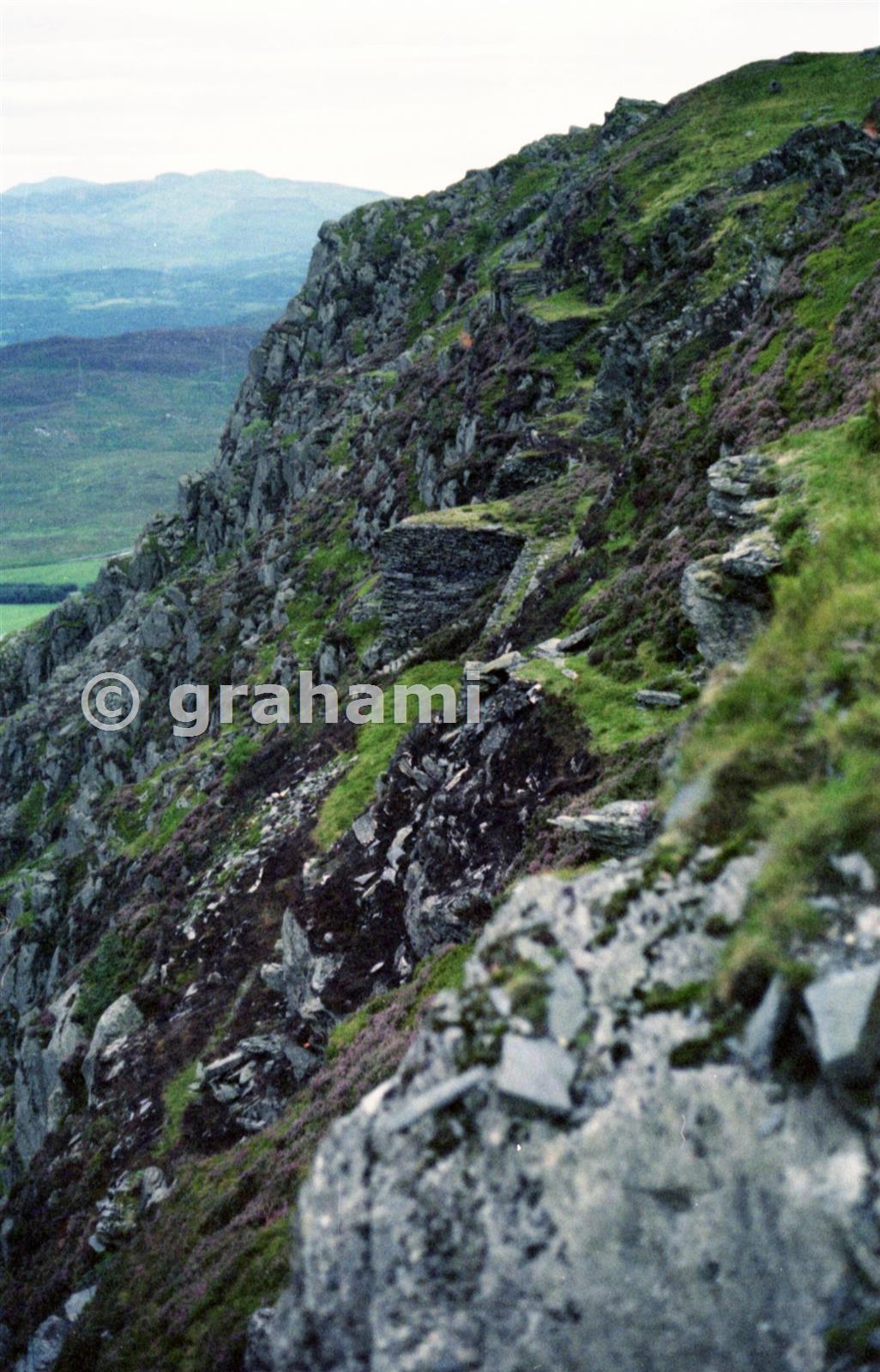 Some people have suggested that the various platforms which exist on the rockface somehow were used to connect to the ropeway/incline. This view was taken from the "Viewpoint" at the end of the Gloddfa Ganol Floor 11 Mine Tour.