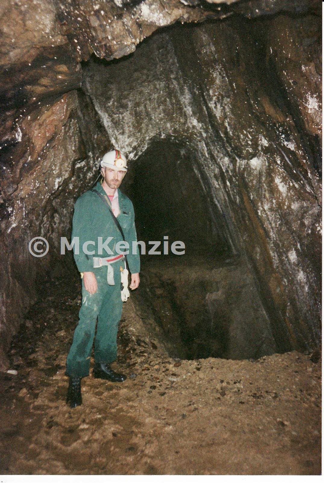 Steve Wadlan by the shaft in Poldice: 14/11/1990