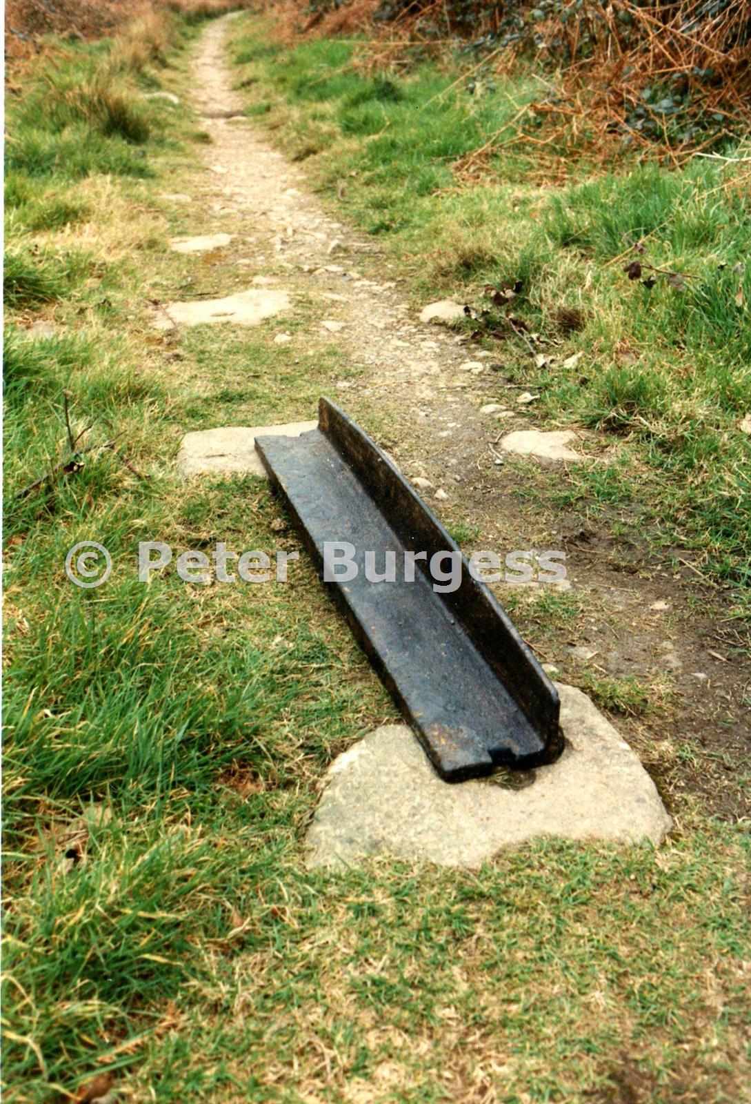 Fitting like a hand in a glove, this Outram rail from the Croydon Merstham and Godstone Iron Railway in Surrey is used to demonstrate how plate rails were laid onto the stone setts. Don't go looking for it - it was only there for a few minutes! This section of the Poldice Tramroad is near St. Day but I cannot be sure exactly where, except that I doubt I would have carried it far from the road!