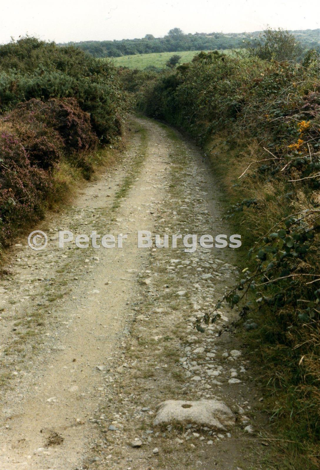 A solitary stone block remains on this section of the tramroad near Wheal Rose. 1985.