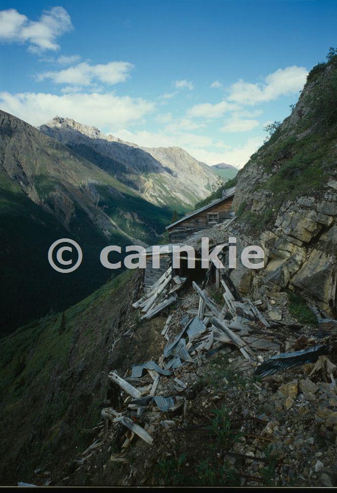 Used as part of the Green Butte Copper Company mining operation. The 50' x 17' structure has a cliff face that forms part of the wall. It is constructed of milled boards and post beams. Besides serving as the original blacksmith shop and generator room, the building contains innumerable artifacts from the 1920s. VIEW OF UPPER CAMP, SHOWING PORTAL SHED FROM ABOVE. Courtesy Library of Congress, Prints & Photographs Division, HAER, Reproduction number HAER AK,20-MCAR.V,1-H-8