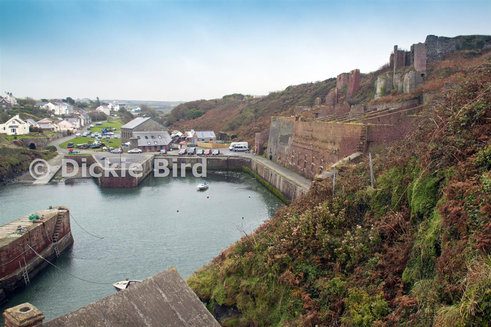 Brickmaking later also took place here between 1889 and 1912. This included drying sheds and a Hoffman kiln for burning the bricks and water powered mill for the treatment of the clay. Also visible is a lime kiln (left in front of large white building). Another slate tramway once terminated at the inner end of the harbour from the Abereiddi quarry.