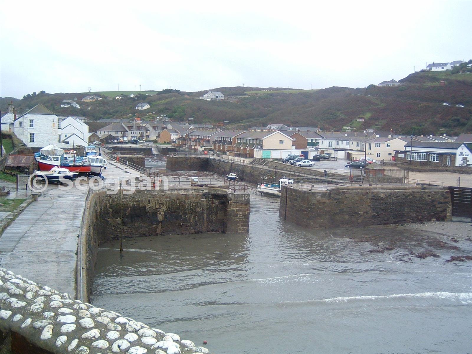 Portreath Harbour glimpse of the tramway extream left. 22-10-06
