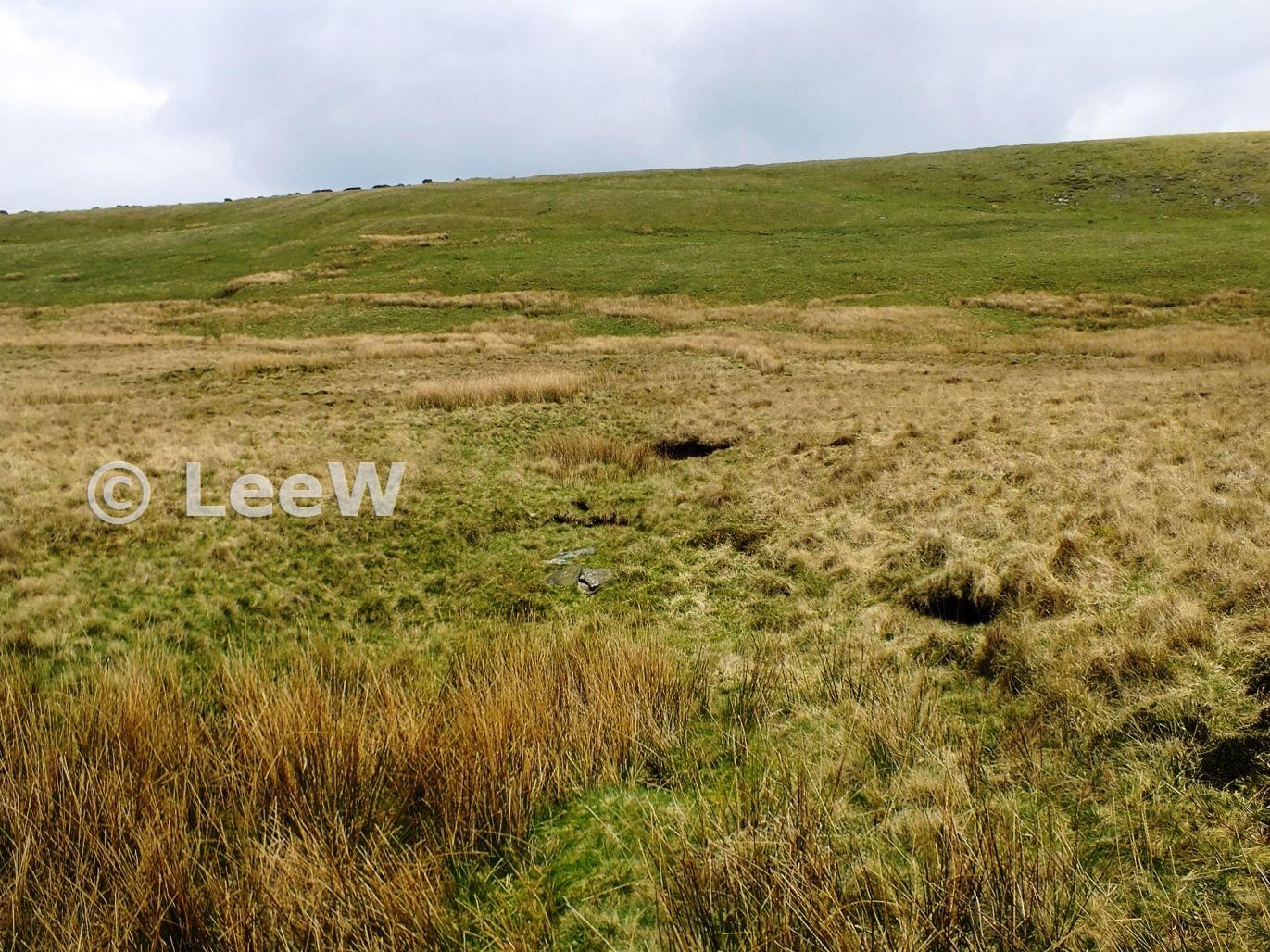 In line with the spoil mound and a gap between the ruined buildings is a gulley with some stone slabs. This is a possible adit