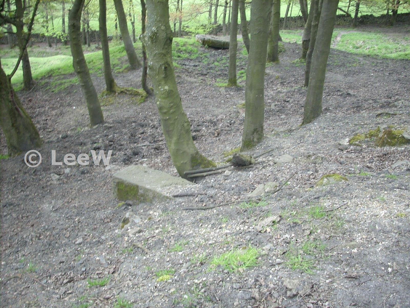 Possible retaining wall and large stone below engine shaft and possible dressing floor (24 April 2009)