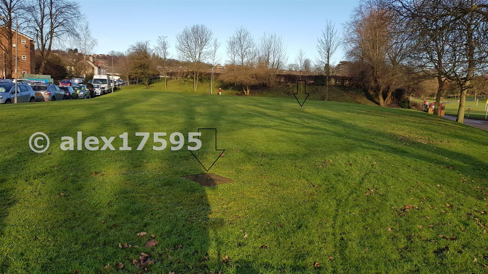 2 manhole covers set in concrete possibly marking the shaft locations. These seem to line up with the 25in OS maps. The raised area in the background is the remains of the tip, now turned into a childrens play area.