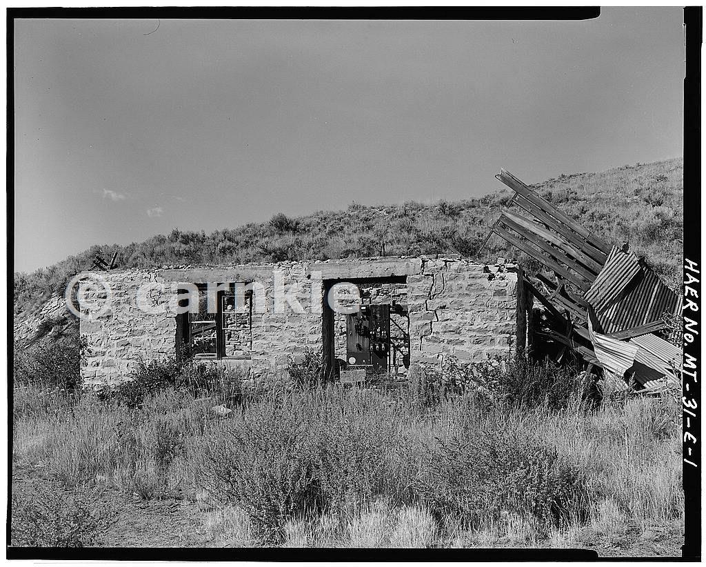 . RUINS OF THE ELECTRIC POWER STATION (NOTE PART OF THE CONTROL PANEL VISIBLE THROUGH THE DOORWAY), VIEW TO THE NORTHWEST). Courtesy Library of Congress, Prints & Photographs Division, HAER, Reproduction number HAER MONT,5-RELO.V,1-E-1