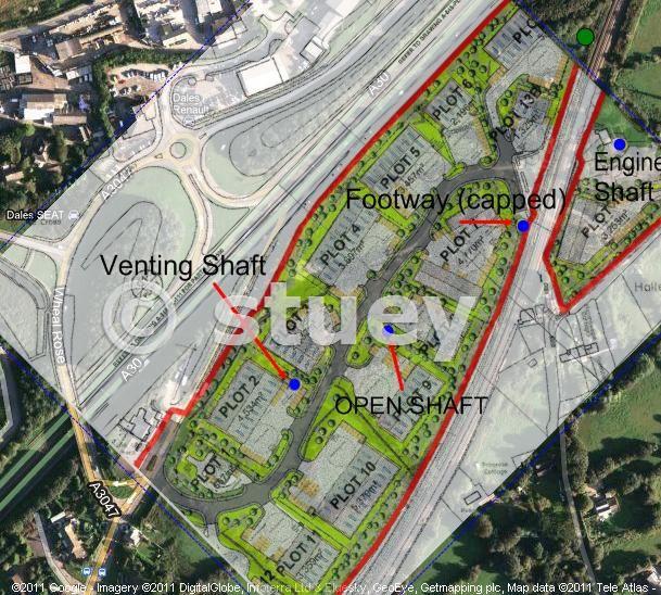 My initial thought was that this "plugging" was due to go ahead (with the associated loss of habitat and ventilation to a big section of the county adit which has poor ventilation anyway) but this overlay clearly shows the position of the open shaft and the venting footway being in a suitable place for bat castle treatment.