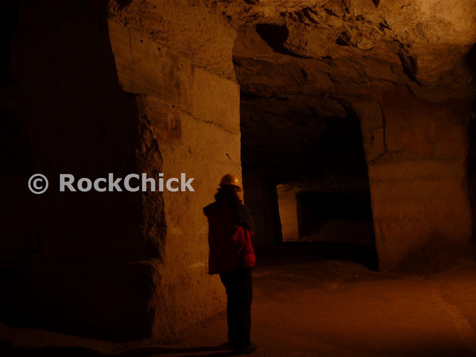 The top of the pillars is pick marked, then lower sections cut away by saws.