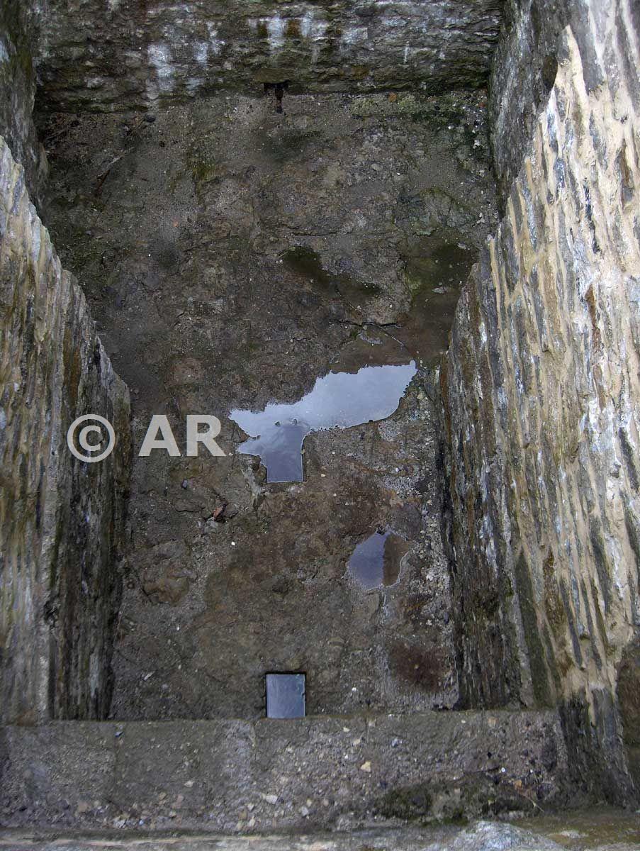Looking straight down to the floor of the engine house - the two square pits held timbers for additional support to the lower cylinder.