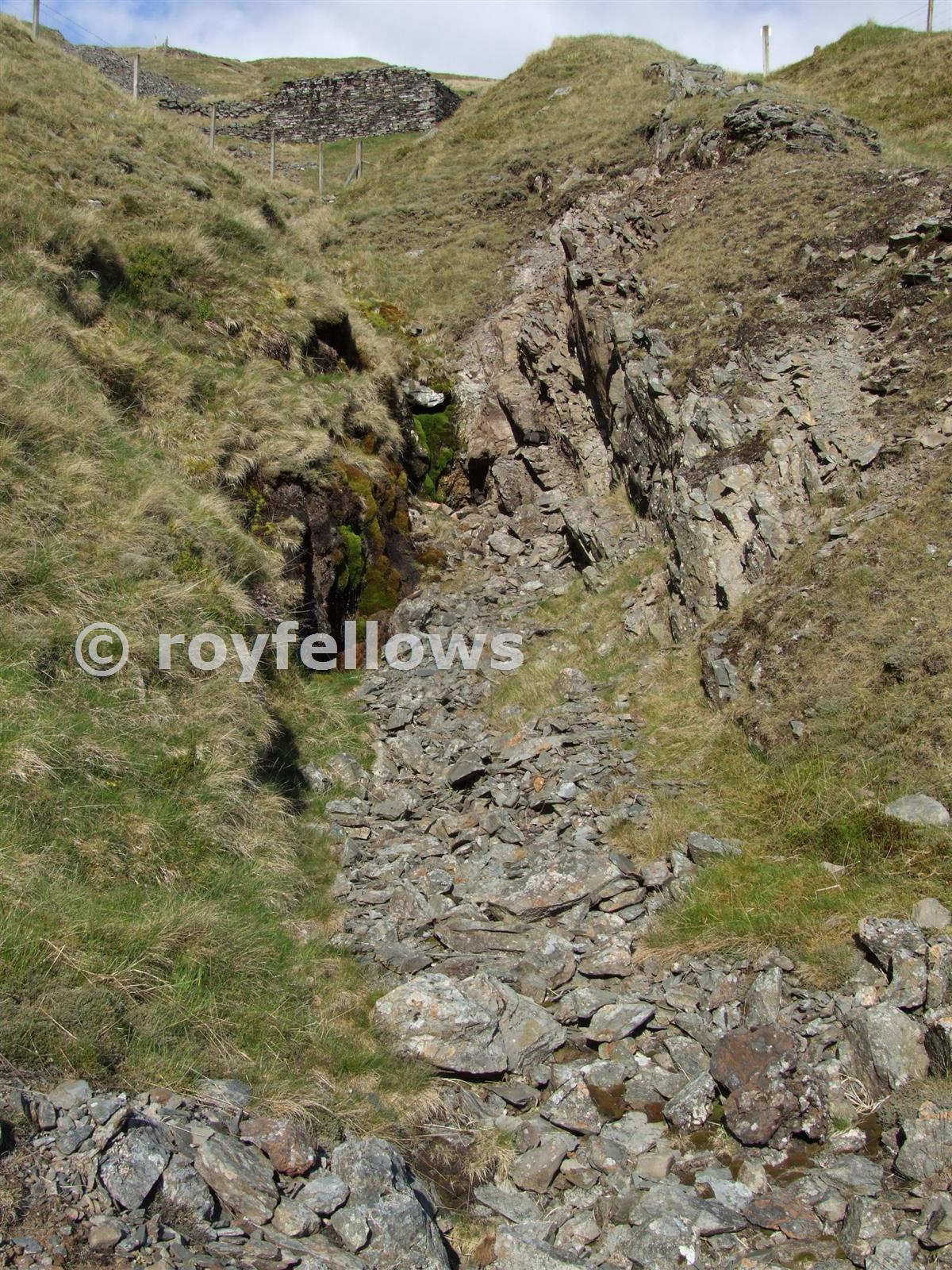 Spalling rock on the right has completely filled the level which is un enterable in June 2013