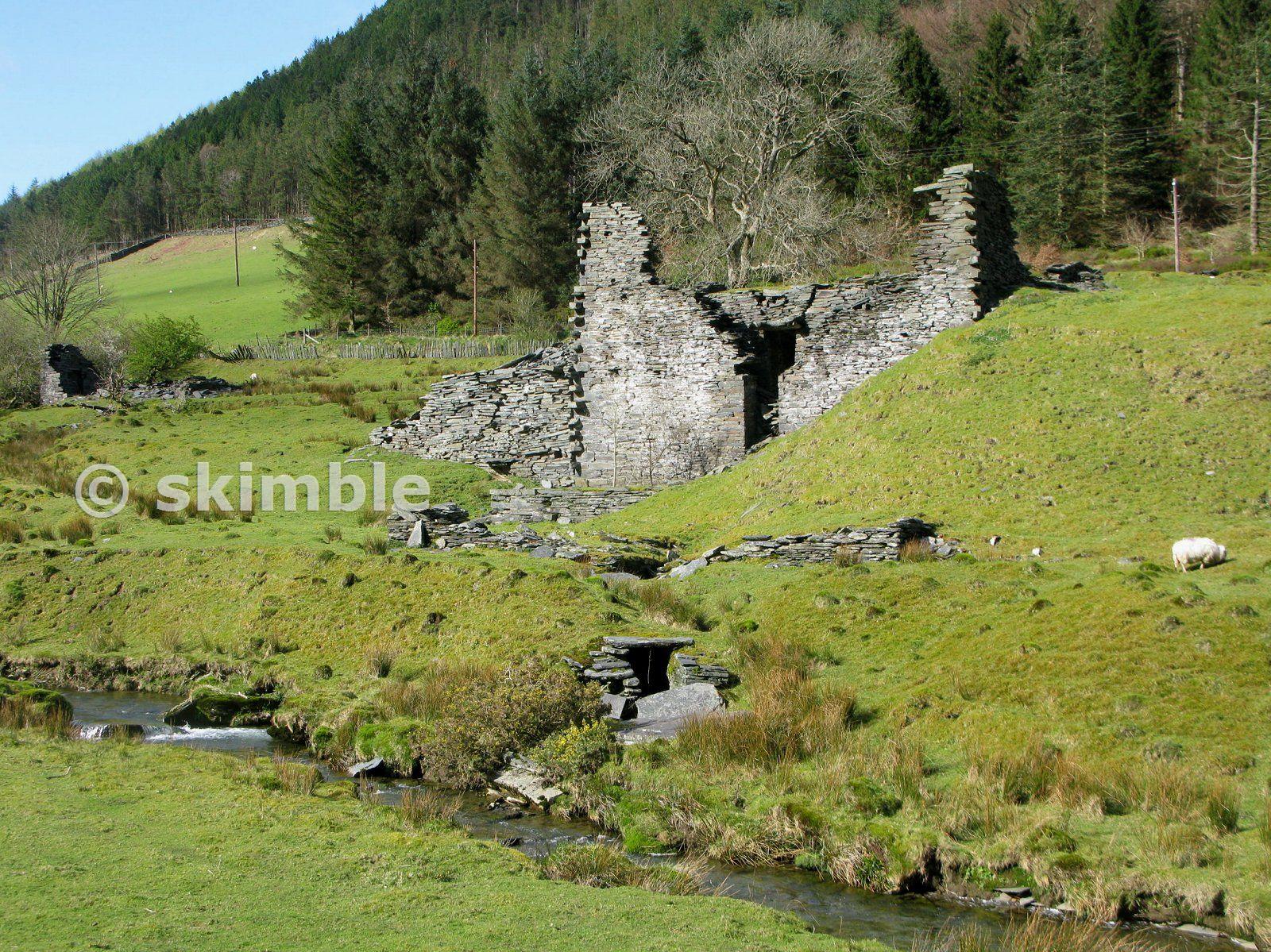 Waterwheel tailrace in the foreground. The sunken wheel pit is in front of the building which had underfloor shafting. 21/04/2012