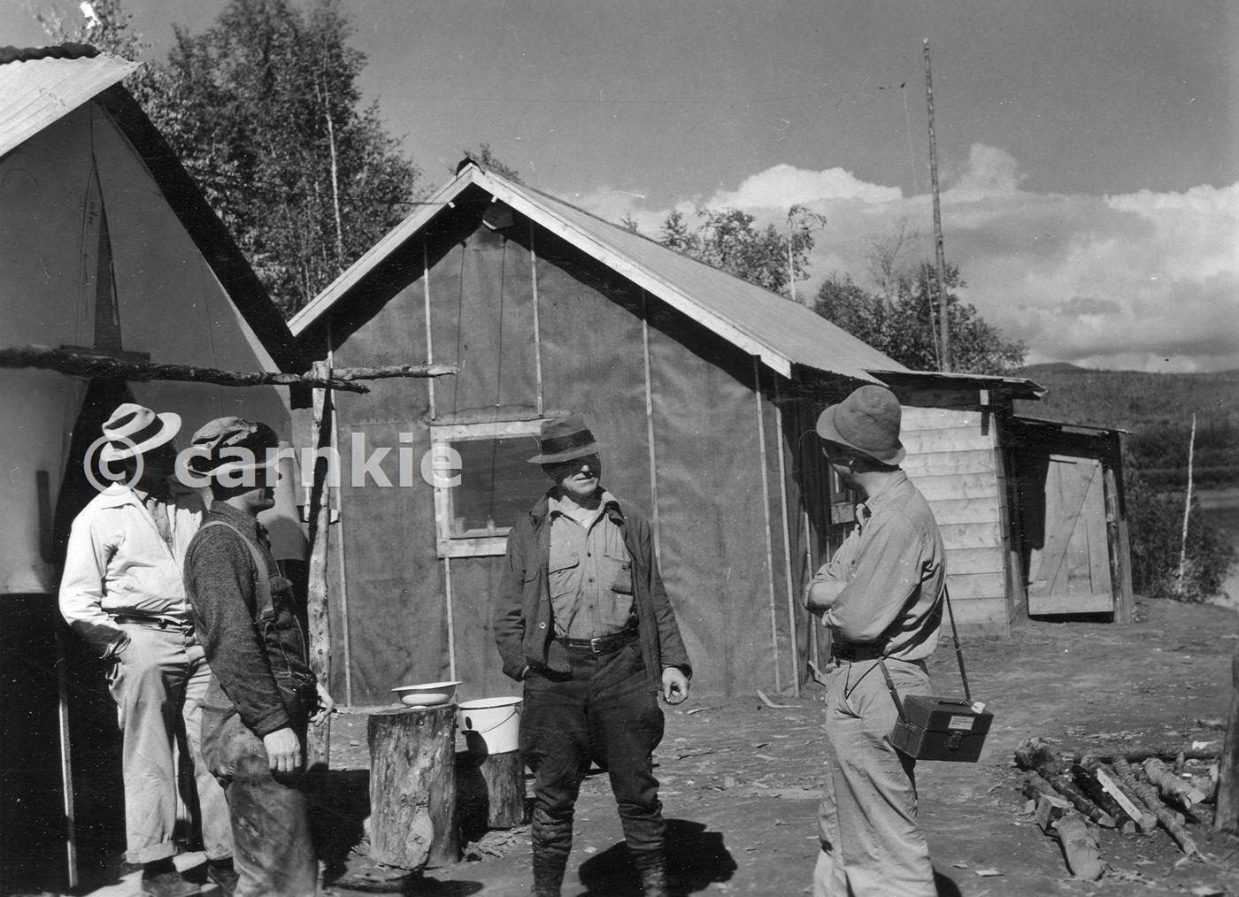Burr Webber and Don Fowler (Bureau of Mines), Tony McDonald and William Cady at Red Devil, Quicksilver Mine. Kuskokwim Region, Georgetown District, Alaska. August 1942. Courtesy U.S. Geological Survey. The USGS home page is http://www.usgs.gov.