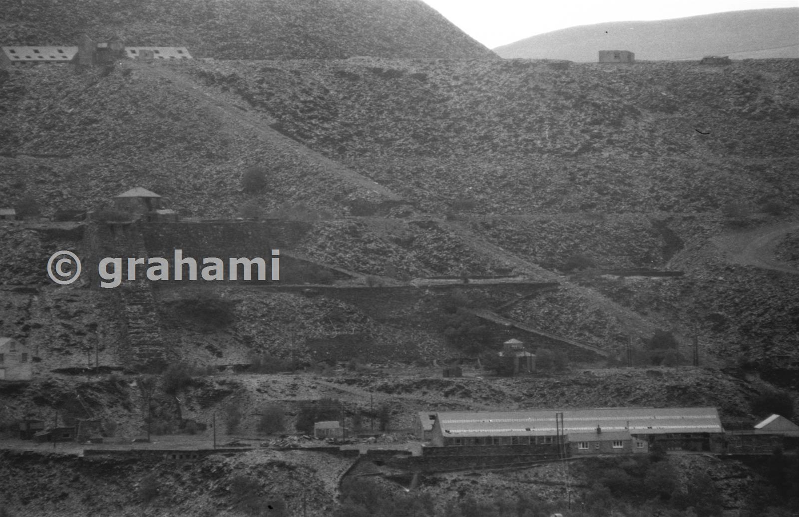 A 500mm telephoto shot from the opposite hillside. At the bootom are the mills on Red Lion Floor. At the left the water balance incline from George and Douglas balances up to Twlldyndwr. The diagonal incline from bottom right to upper left has it's drum on (I think) Ponc William Owen.