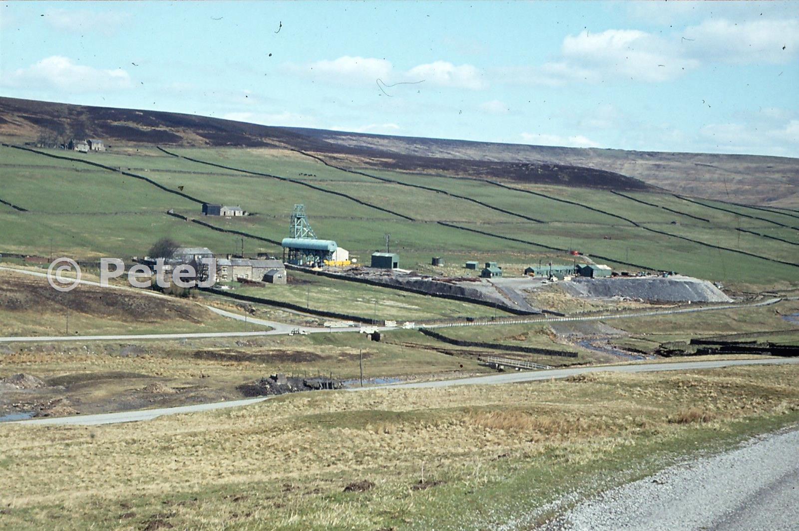 1971. Yellow Haglunds wagons waiting to go down incline.